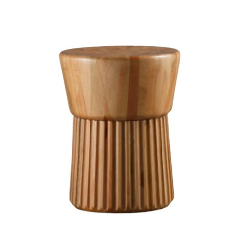 Desenhado pela designer Marta Manente, o banco Ceppo tem um design irreverente, marcado pelo ripado na madeira maciça. Na foto você vê o Ceppo na madeira natural Amêndoa suave.