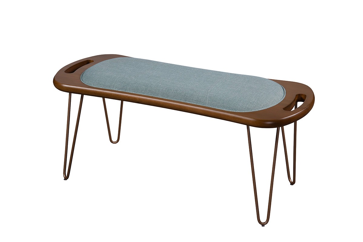 O design do banco é notável por suas curvas suaves e contornos harmoniosos, que lembram as ondulações de uma duna de areia.