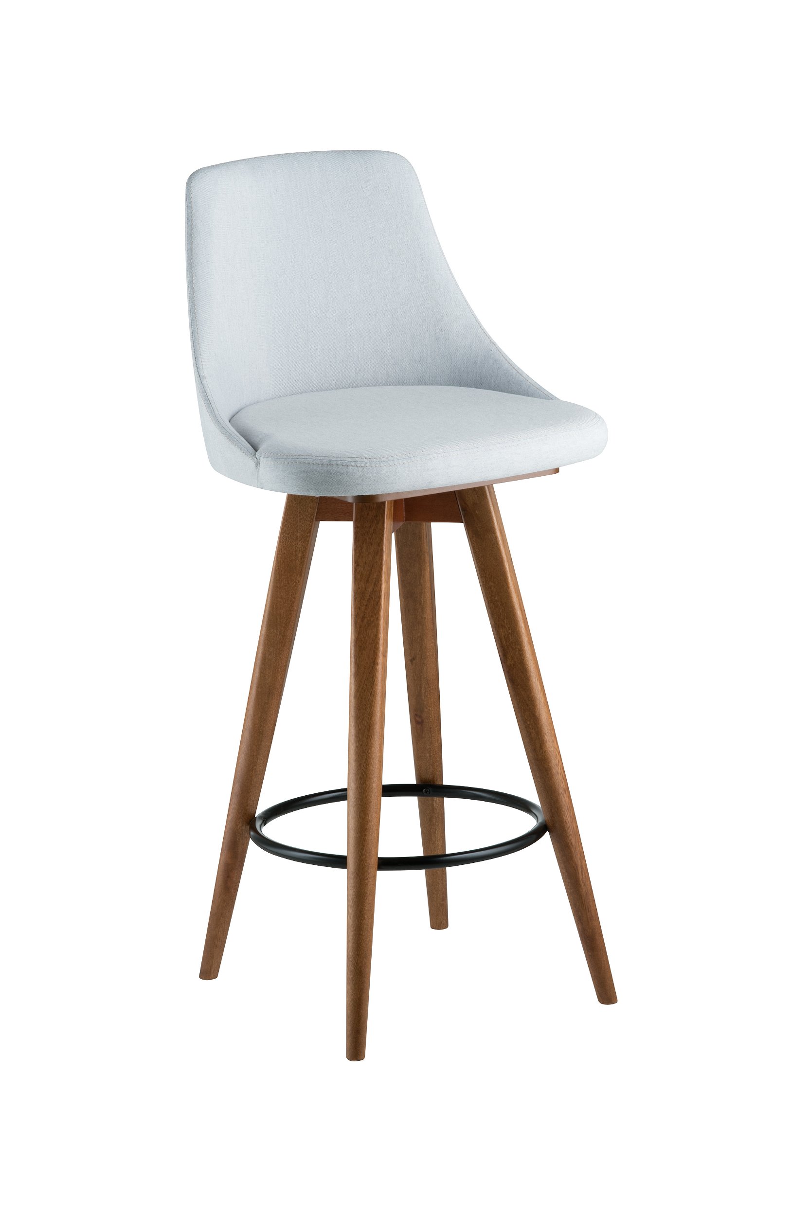 Estrutura em madeira maciça de eucalipto, com sistema giratório em aço e nylon, de movimentos suaves e alta resistência.