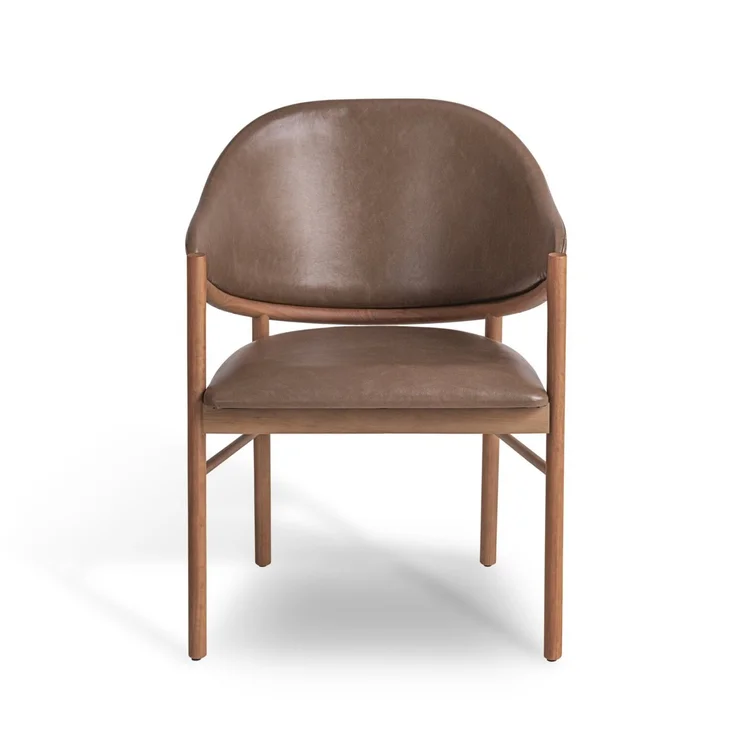 A cadeira Giane é um móvel de design versátil, com estrutura em madeira e detalhes que podem incluir palha, adequando-se a diversos estilos de decoração de sala de jantar.