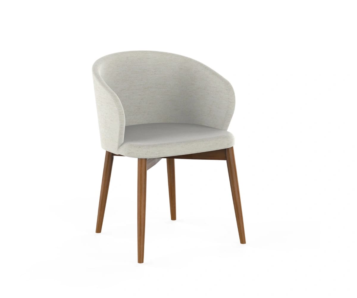 Estrutura em madeira maciça de eucalipto. Concha em MDF ergonômico, estofada com espuma de boa densidade e revestida com tecido de alta qualidade. Produto fornecido desmontado, sendo necessário apenas parafusar os pés a concha.