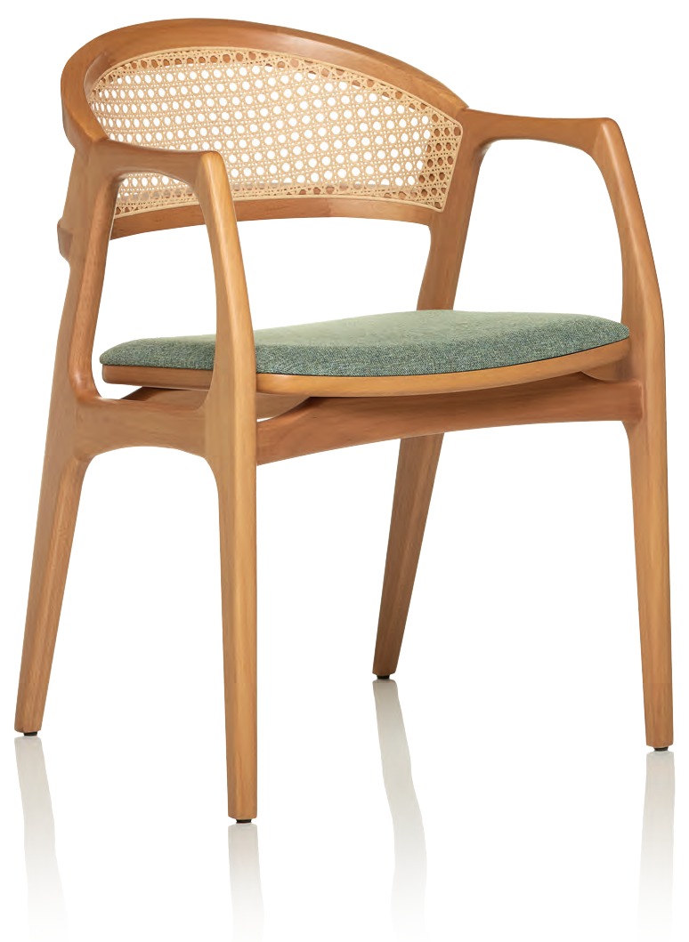 Com um briefing baseado nos produtos que já fizeram sucesso na CGS Móveis, Carlos Arralde, resgata a cadeira Gina, dando vida e forma novamente ao produto, com seu toque particular do uso e exploração da madeira ele redefine um novo sentido ao produto utilizando o alto poder fabril que a fabrica possui e precisão delicada do uso da madeira, definindo assim a Cadeira Gina.