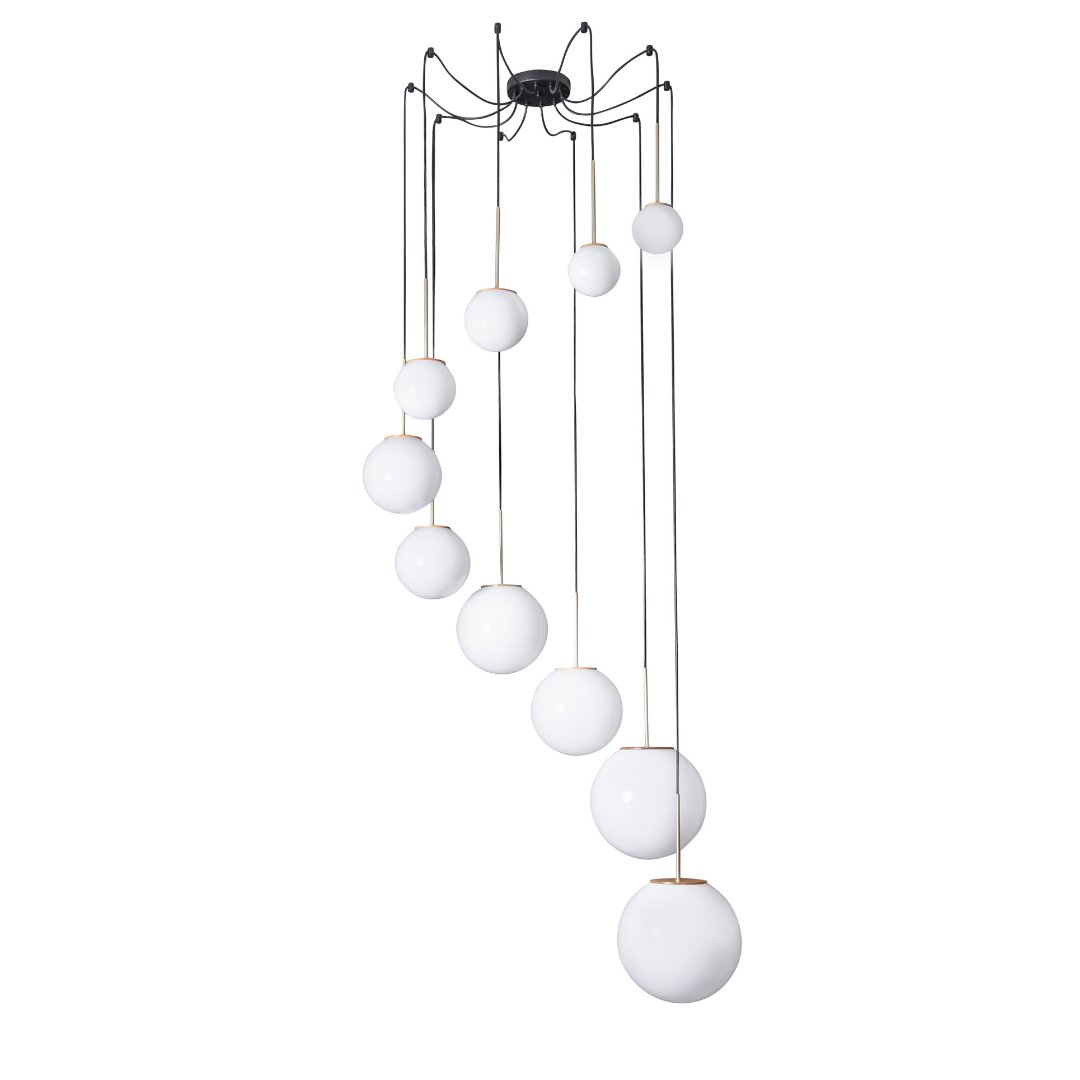Com vidro leitoso e presença marcante, é ideal para valorizar ambientes com pé-direito alto. Seu deslocador para cabo permite ajustar a instalação da peça, adaptando-se com elegância a diferentes espaços.