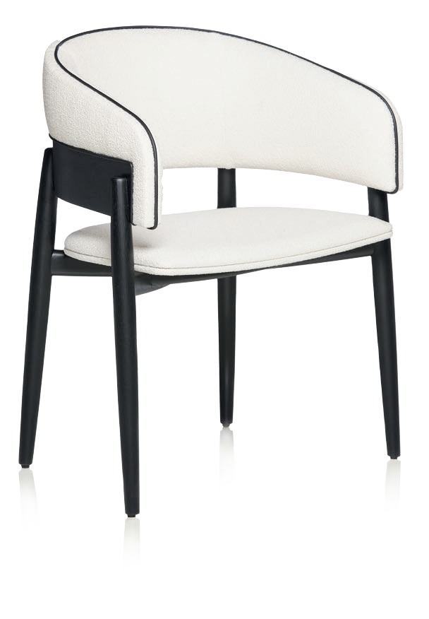 Sua concha estofada dupla garante um estofamento despojado e aconchegante mantendo uma linguagem elegante na parte externa com sua estrutura esguia e estofado alinhado. Herança resgatada de outra coleção co-assinada pelo designer para a marca no passado.