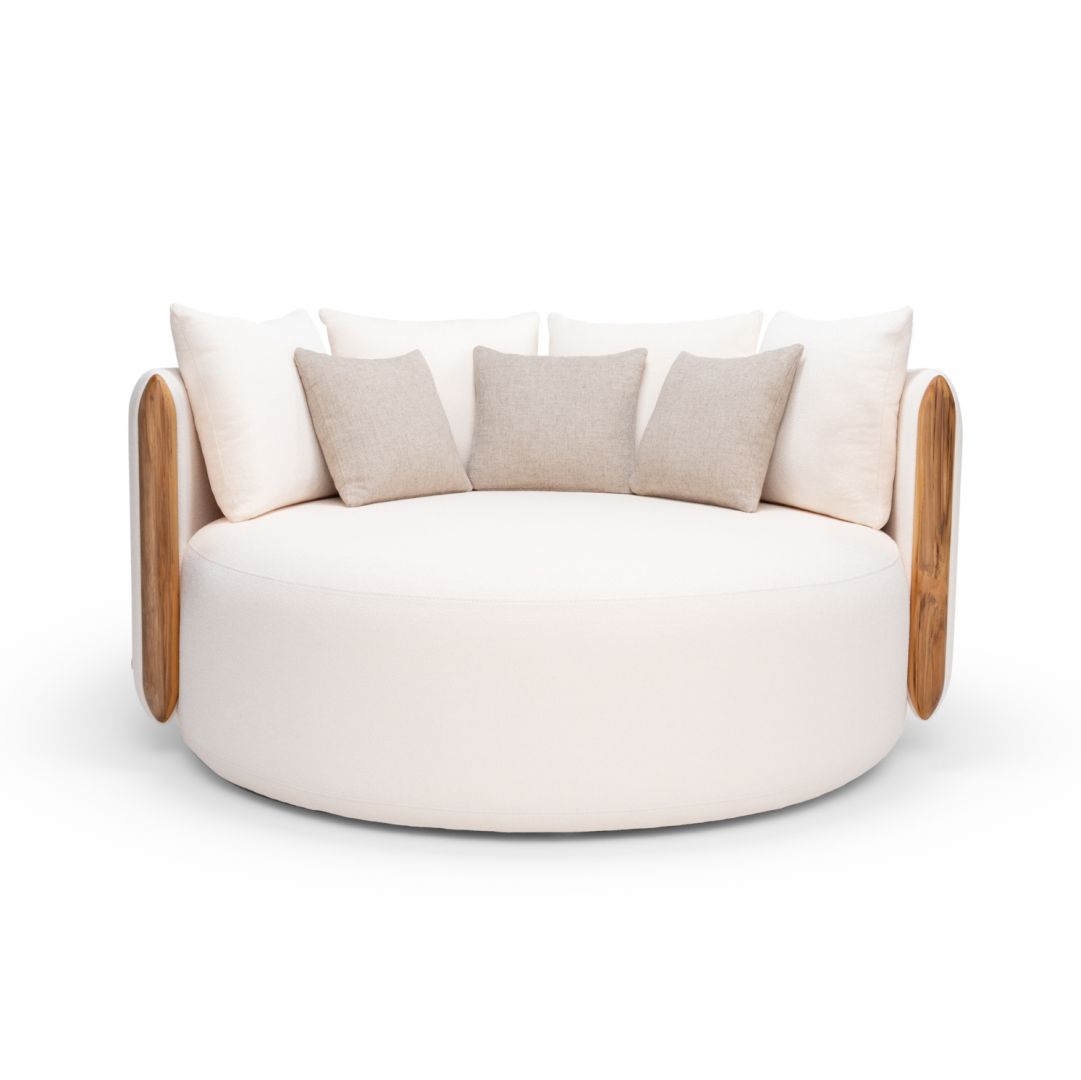 Os traços esféricos da Chaise Domo, remetem à cúpula da Casa de Cultura Mário Quintana, como um convite a escapar das demandas da vida e se perder na beleza da arte e do horizonte que se estende à sua frente.
