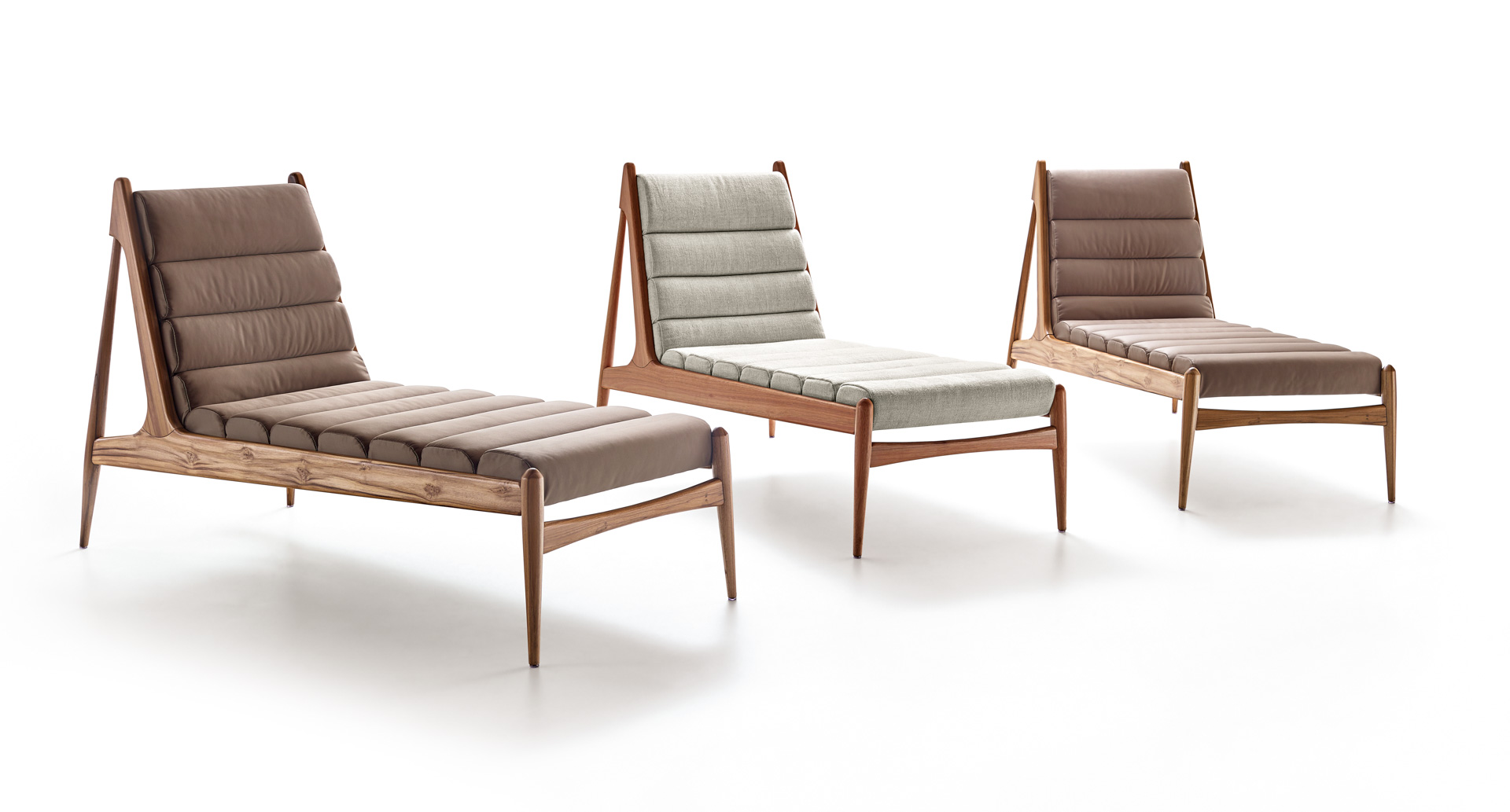 Wave é chaise longue de inspiração vintage, com estrutura em madeira e revestimento em tecido. Indispensável em qualquer projeto de decoração contemporânea.