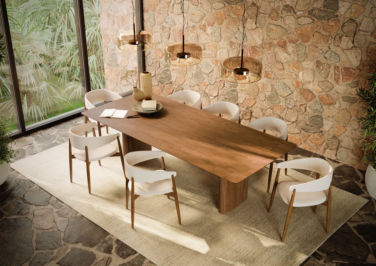A cadeira representa a união da família e dos amigos ao redor da mesa de Jantar, contemplando os momentos de celebração e alegria. Foi concebida visando ser o suporte para estes momentos de união. Sua estrutura de madeira é leve e ao mesmo tempo estável e imponente, o encosto estofado é conectado a estrutura em 4 pontos, deixando a leveza da peça em evidência.