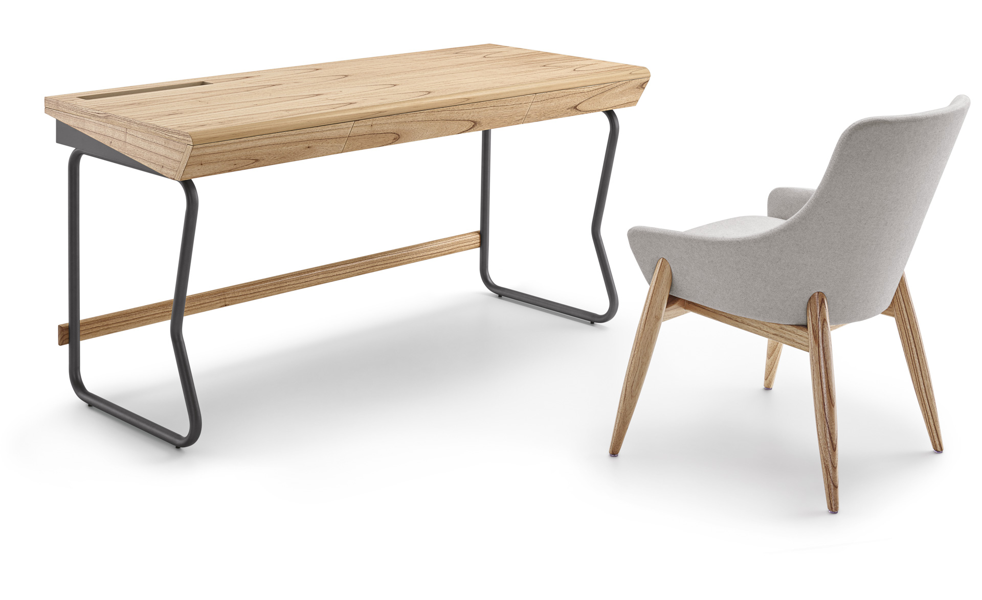 A escrivaninha Class representa leveza e praticidade em um produto com design contemporâneo, mas que traz no seu contorno os traços das tradicionais classes escolares. A mistura do metal com a madeira natural proporciona um charme específico ao produto.
