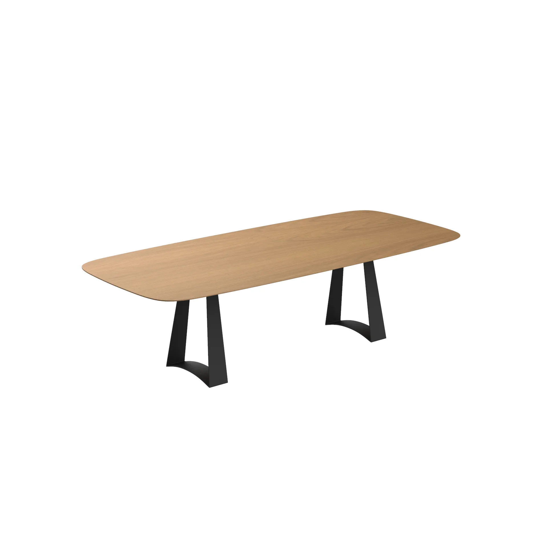 A Mesa Daphne expressa a perfeita harmonia entre materiais e formas. Sua estrutura em metal conta com detalhes calandrados reproduz o efeito visual da madeira tocando peças estofadas. O novo tampo em formato barril imprime personalidade à peça e ao ambiente.