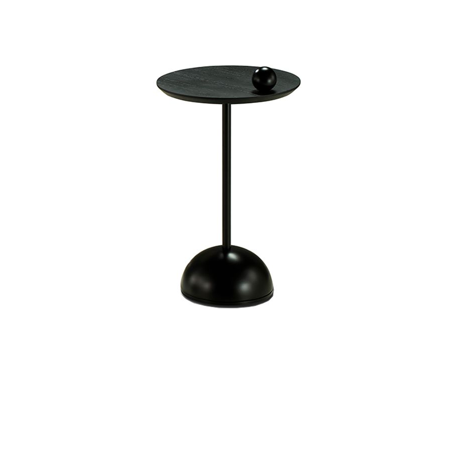 A Mesa de Apoio Colina Bubble da Meridiano Móveis é uma peça de design versátil, com tampos laminados e uma esfera de madeira, ideal para ser movimentada e apoiar objetos em diversos ambientes.