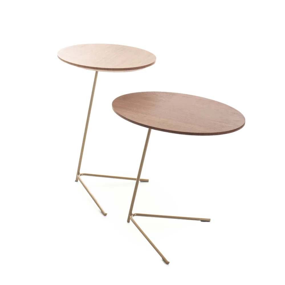 As mesas laterais Aura e Luz trazem proporções equilibradas e um desenho sutil que valoriza a leveza dos materiais. Seu tampo em lâmina natural adiciona aconchego e autenticidade, enquanto a estrutura metálica, com pintura epóxi ou automotiva, garante estabilidade e durabilidade.