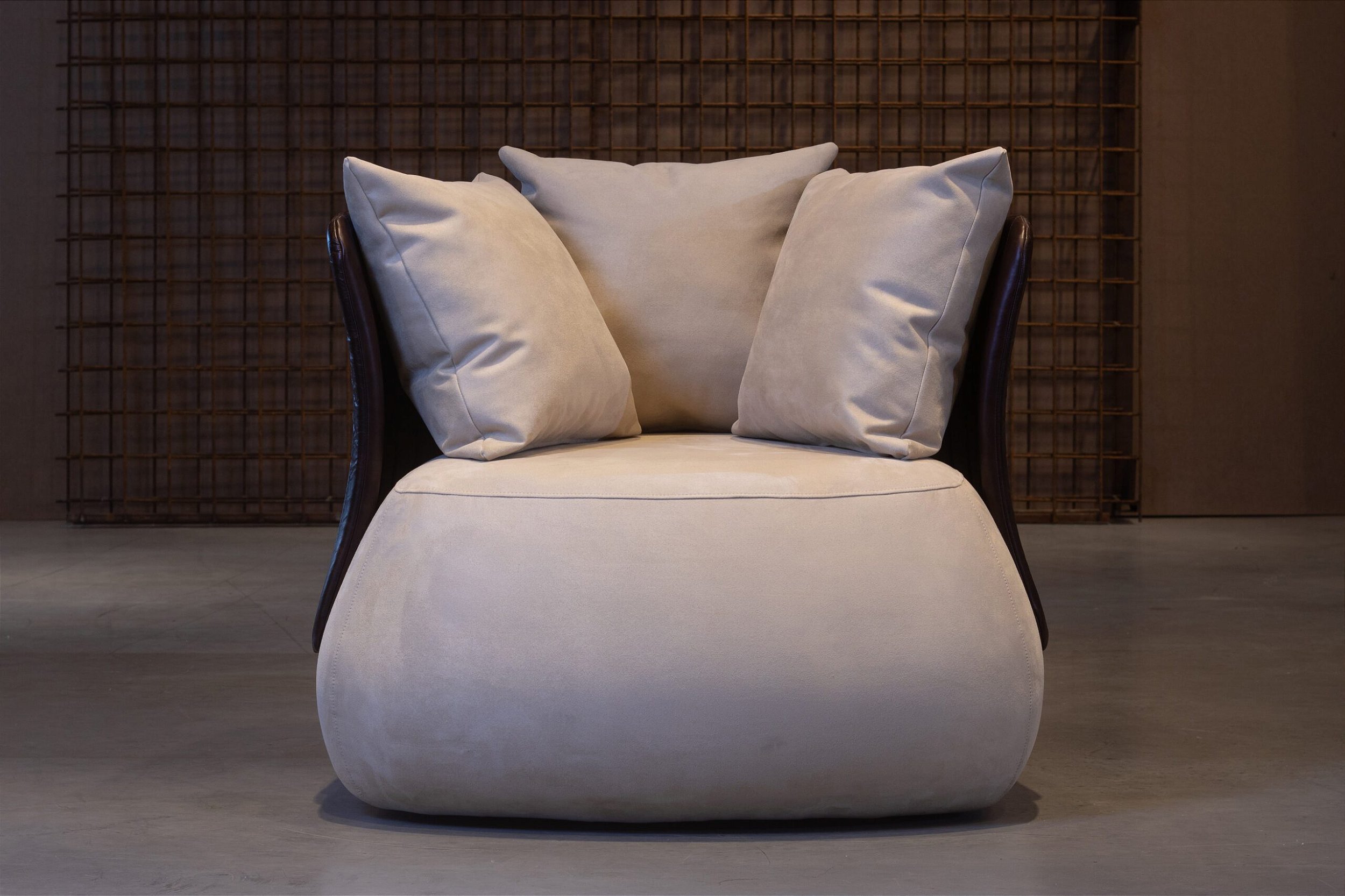 A poltrona Amelie acolhe, acalenta. Com seu formato exclusivo, ela se assemelha à delicadeza de um abraço, convidando ao aconchego. Permita-se ser envolvido por sua textura, seu toque suave e estofamento macio. Você merece esse descanso!