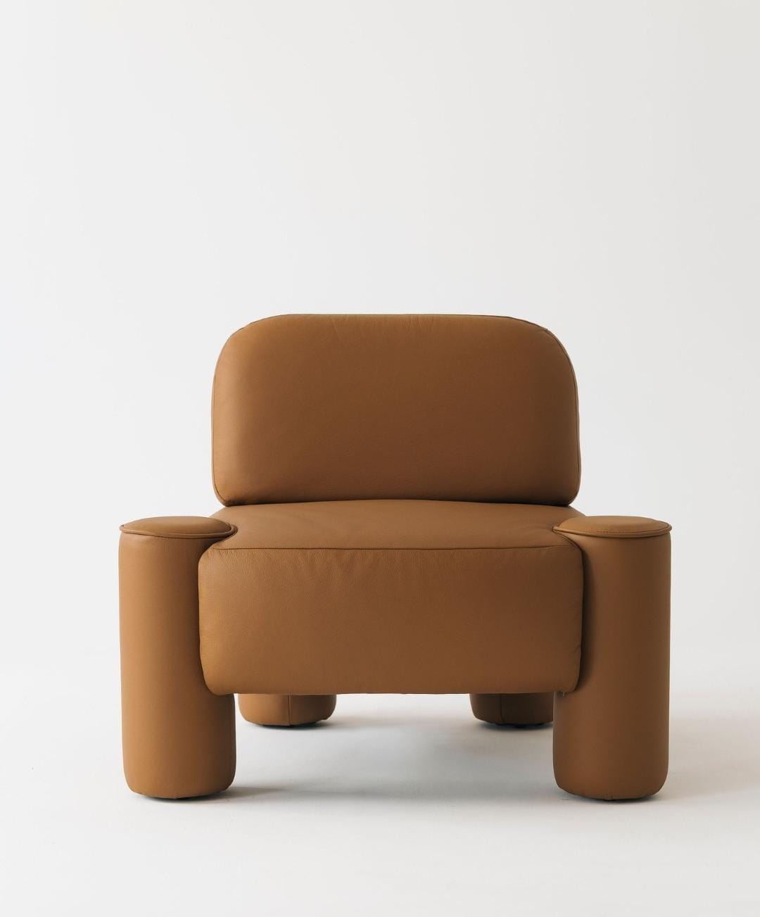 Suas linhas volumosas e formas cilíndricas robustas evocam força, enquanto os detalhes de acabamento em couro conferem elegância.