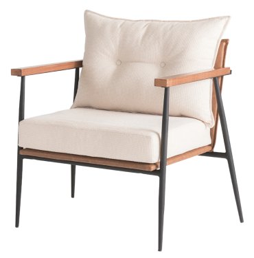 Base em aço com acabamento em Pintura epóxi ou metalizada adcionam contemporeneidade, o braço em madeira maciça de ecucalipto traz um ar de sofisticação, a estrutura do assento e do encosto em multilaminado revestido com tecido proporciona maior sustentação e beleza, enquanto a almofada do assento em espuma e manta siliconada em conjunto com a almofada solta do encosto em fibra siliconada potencializam o conforto.
