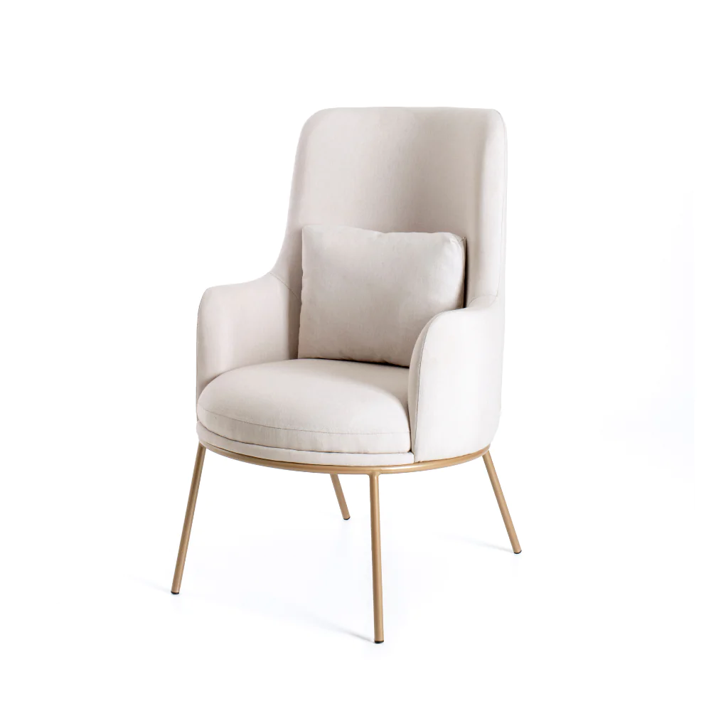 A Poltrona Lupi se destaca pelo encosto alto e linhas envolventes, oferecendo apoio e aconchego em cada detalhe. Uma peça sofisticada que une conforto e estilo, perfeita para compor ambientes contemporâneos com leveza e personalidade.