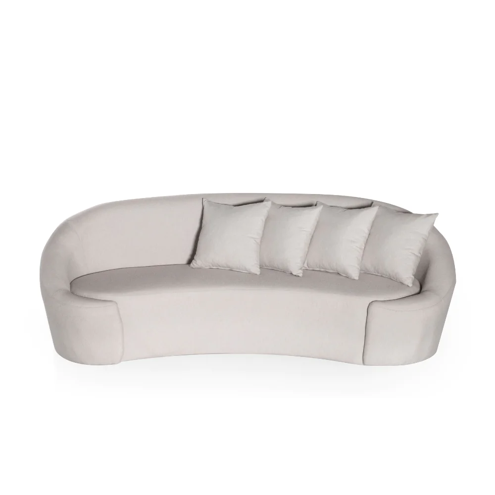 O Sofá Bueto encanta pelo design curvo e pela sensação de acolhimento que transmite. Seu visual escultural transforma o ambiente em um espaço sofisticado e contemporâneo, sem abrir mão do conforto e da maciez.